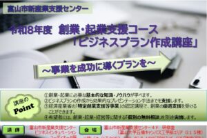*「令和8年度創業・起業支援コース『ビジネスプラン作成講座』」全6回シリーズ(5/27、6/10、24、7/8、22、8/5)を開催いたします。
